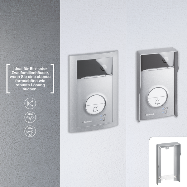 • Je nach gewähltem Set und Türstation beträgt die Schutzart IP54 und die Schlagfestigkeit IK10