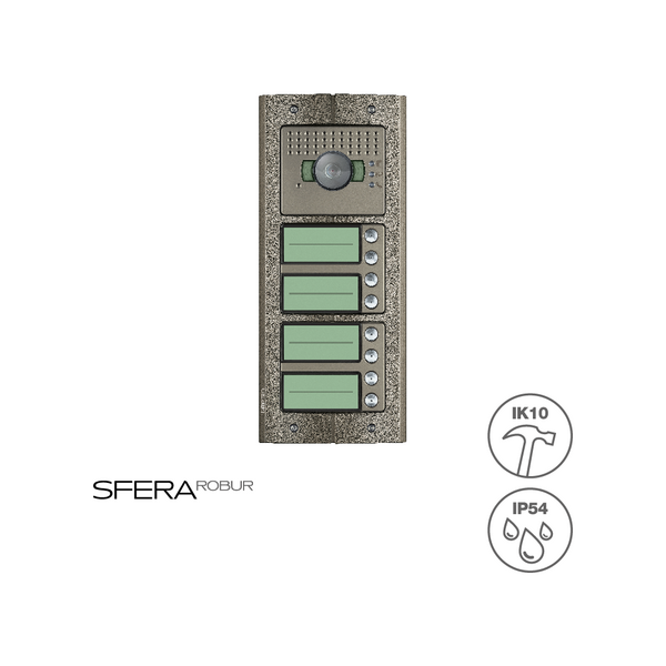 SFERA erstreckt seinen Anwendungsbereich vom Einfamilienhaus bis hin zu großen Wohnkomplexen. Durch den modularen Aufbau und die flexible Montage (horizontale oder vertikale Anreihung) ist sie die Lösung für jedes Projekt. Es sind 2 verschiedene Ausführungen der Türstation verfügbar. Die Ausführung SFERA Aluminium - in den Farben Allmetal, Allwhite und Allstreet - und SFERA Robur.